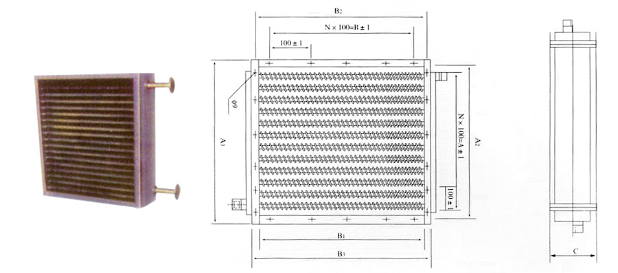 SRL型散熱器以蒸汽或過(guò)熱水為媒,蒸汽壓力高為16Kg/cm,過(guò)熱水溫度為130℃,適用于空氣調節系統及干燥室內的空氣加熱。