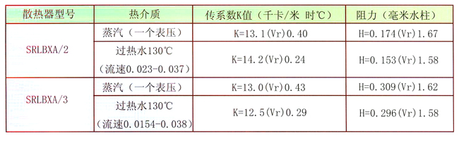SRL型散熱器傳熱系數阻力表